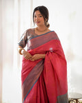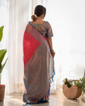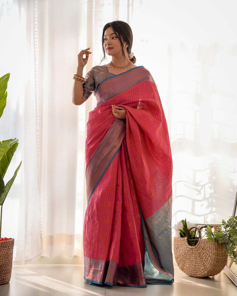 Pink Kanjiwaram Hand Woven Copper Zari Silk Saree