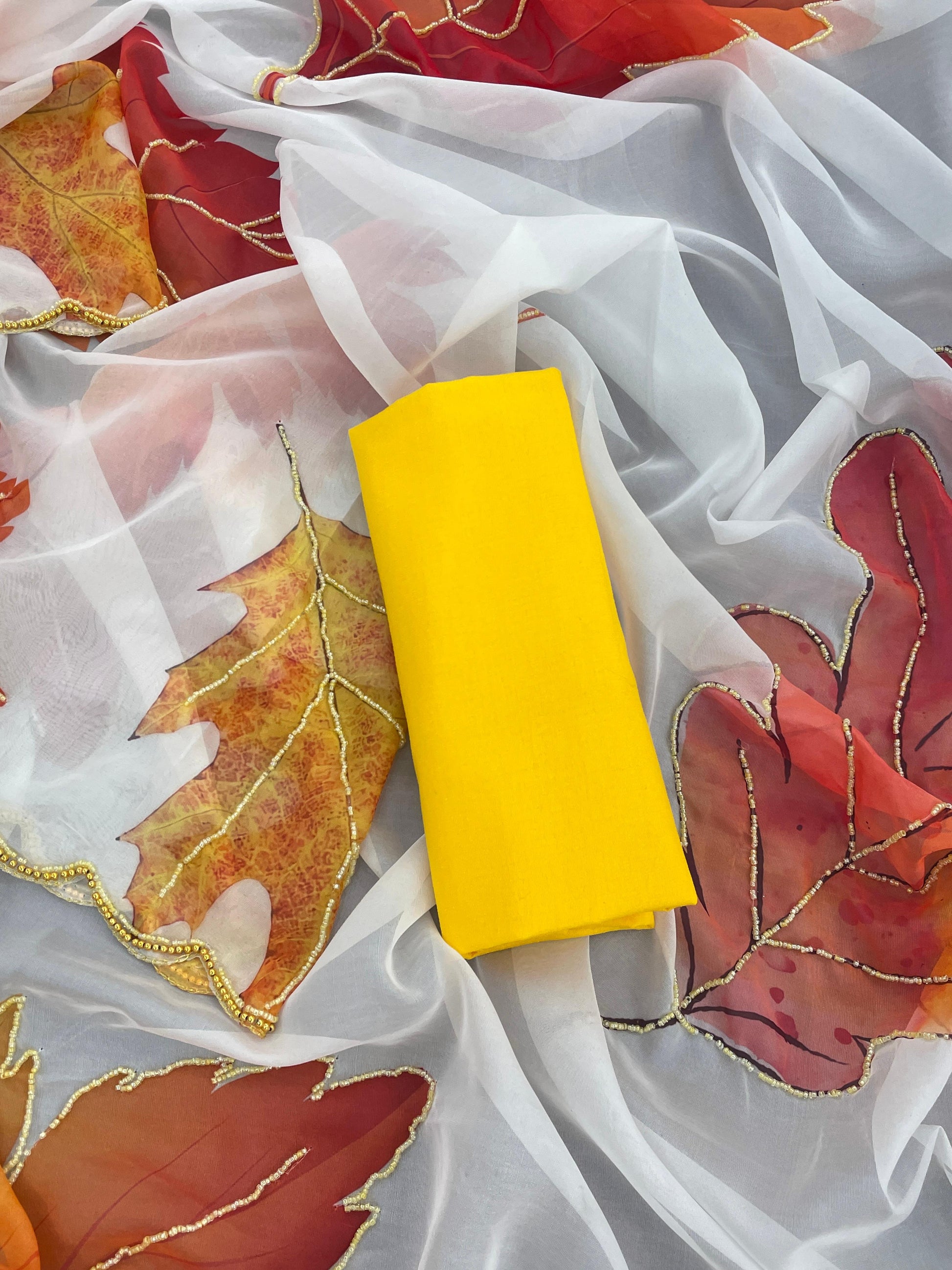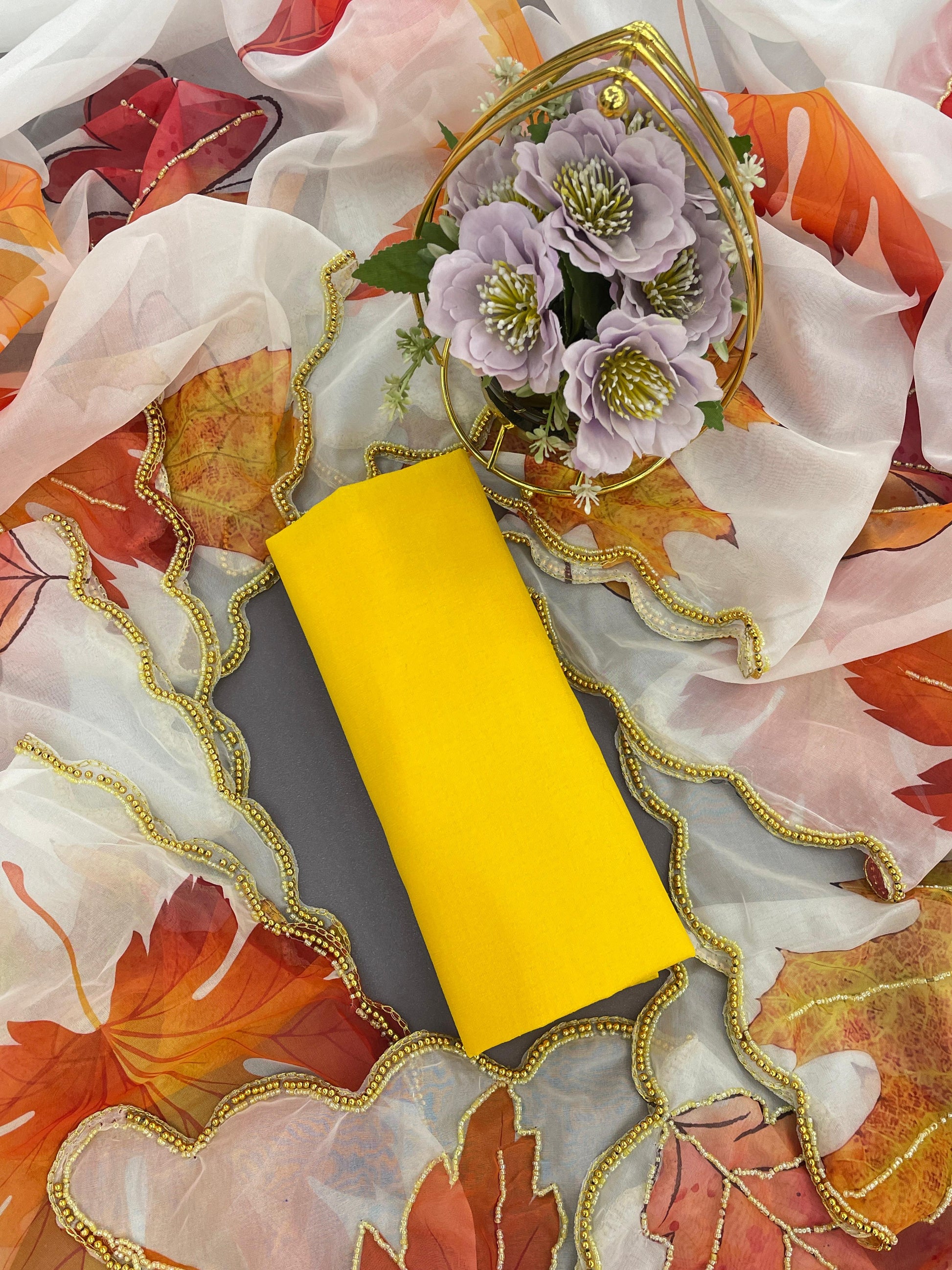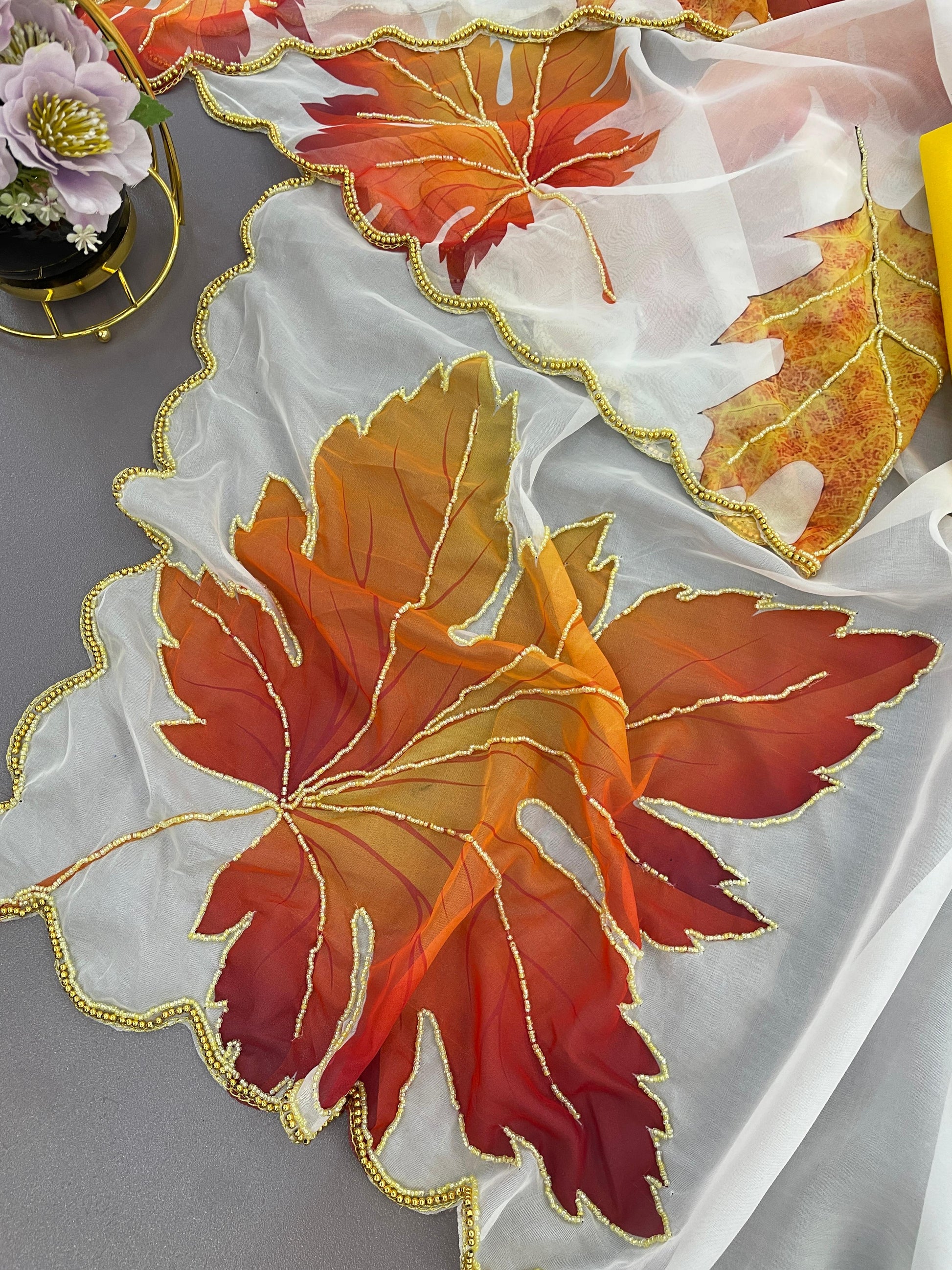 Flower samajhke rakha he kya Very smooth Organza Tabi fabric saree featuring a dreamy printed design adorned with delicate white pearl handwork embroidery all over. The saree is enhanced with an elegant pearl cutdana cutwork border for a graceful finish. Comes with an unstiched blouse in soft white with matching pearl hand work