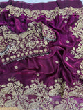 Turn heads this festive season with our *Fancy Fendy Satin Saree* adorned with all-over zari sequins work for that perfect glow.